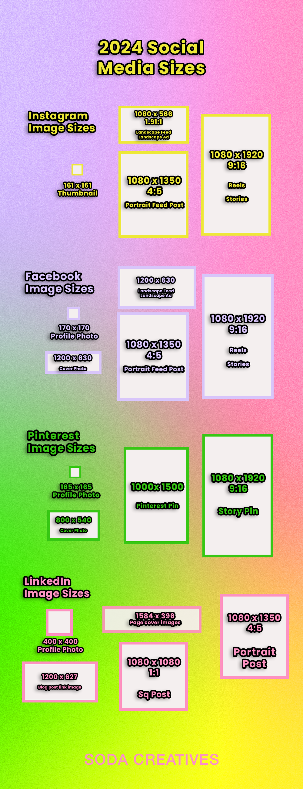 As we navigate the ever-changing landscape of social media, it's crucial to stay up-to-date with the latest image and video size requirements. At SODA Creatives, we're all about making your content shine across all platforms. So, let's dive into the optimal sizes for Instagram, Facebook, LinkedIn, Pinterest, and TikTok in 2024!